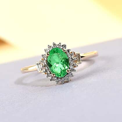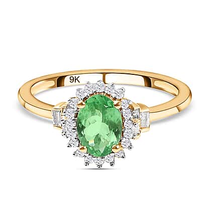 9K Yellow Gold Tsavorite Garnet and Diamond Ring 1 Ct