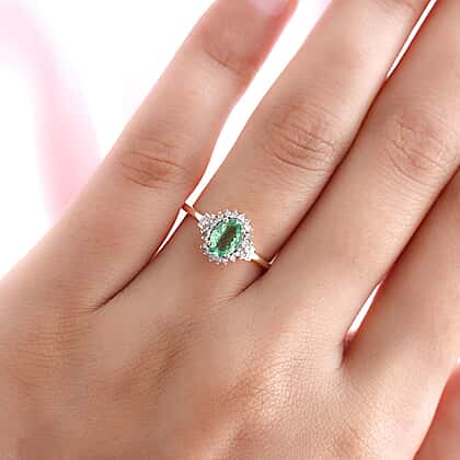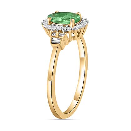 Tsavorite Garnet and Diamond Halo Ring in 9K Yellow Gold