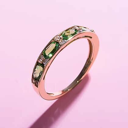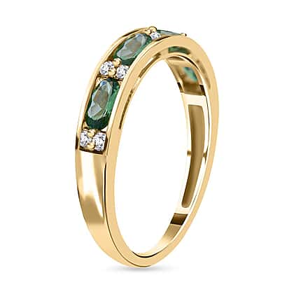 9K Yellow Gold Tsavorite Garnet & Natural Zircon Half -Eternity Band Ring 1.20 Ct.