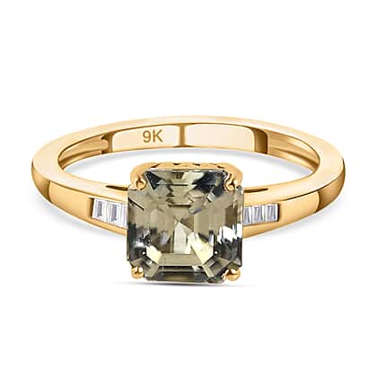 9K Yellow Gold Turkizite (Asscher Cut) and Diamond Ring 2.00 Ct.