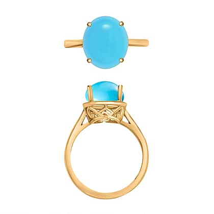 AA Sleeping Beauty Turquoise Solitaire Ring in Vermeil Yellow Gold Sterling Silver Wt. 5.5 grams, 2.60 Ct
