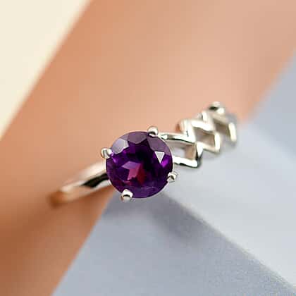 AA Amethyst Zodiac-Virgo Ring in Platinum Overlay Sterling Silver