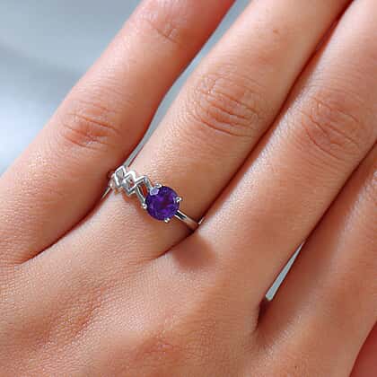 Amethyst February Birthstone Zodiac Aquarius Sign Ring in Platinum Plated Silver