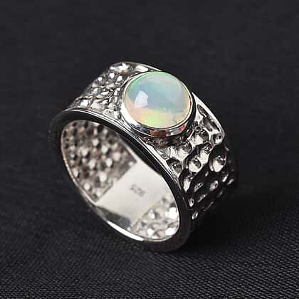 1 Carat AA Ethiopian Welo Opal Band Ring in Platinum Plated Sterling Silver