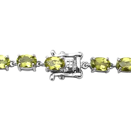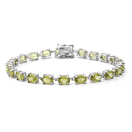 10.34 Ct AA Hebei Peridot Tennis Bracelet in Rhodium Plated Sterling Silver 7 Inch