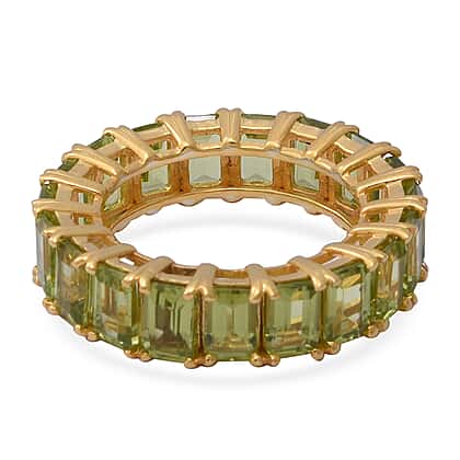 11.59 Ct AA Hebei Peridot Eternity Ring in Yellow Gold Plated Sterling Silver