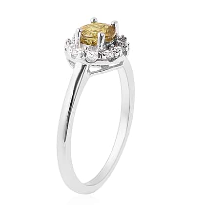 1.15 Ct AA Sava Sphene and Zircon Halo Ring in Rhodium Plated Sterling Silver