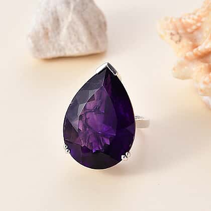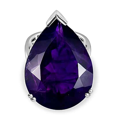 AAA African Amethyst Solitaire Pear Cut Ring in Rhodium Overlay Sterling Silver 35.00 Ct