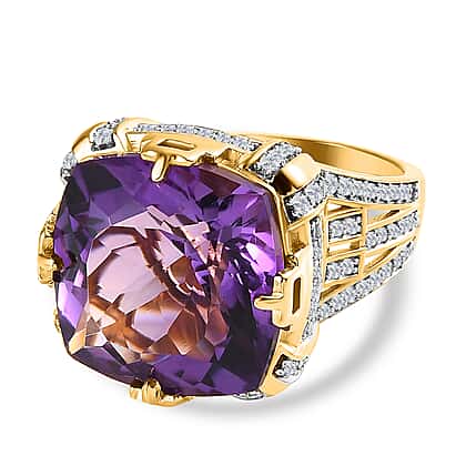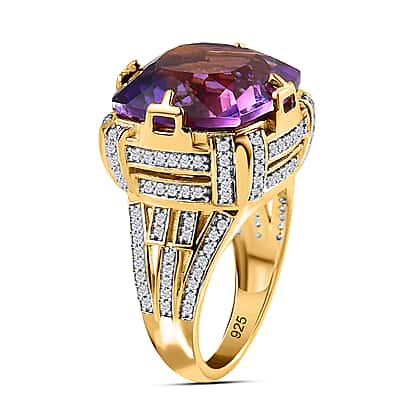 AAA Canela Amethyst Ring in 18K Yellow Gold Vermeil Plated Sterling Silver 16.00 Ct.