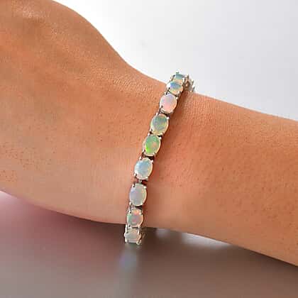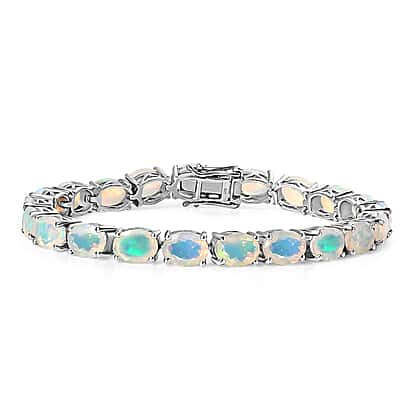 AAA Ethiopian Opal Tennis Bracelet (Size - 7) Rhodium Overlay Sterling Silver 13.42 Ct, Silver Wt. 12.56 Gms.