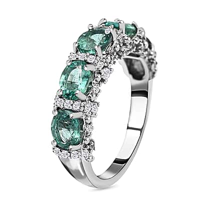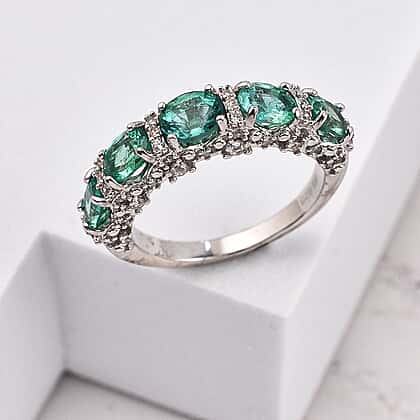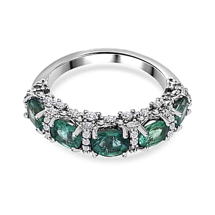 AAA Gemfields Emerald and Natural Zircon Half Eternity Ring in Rhodium Overlay Sterling Silver 2.13 Ct.