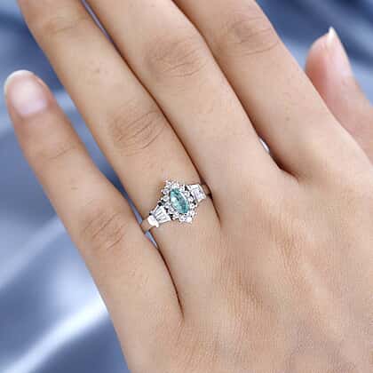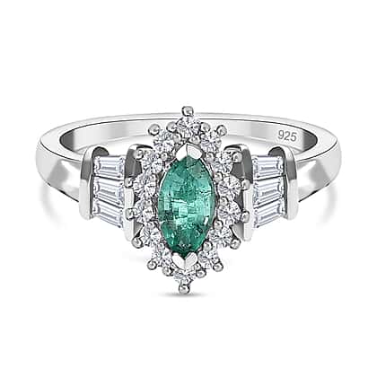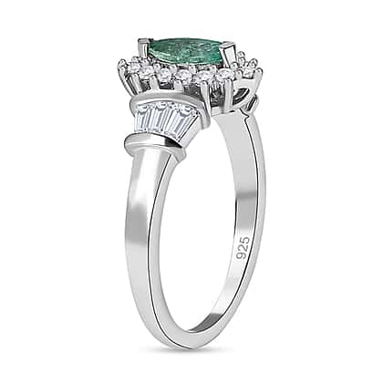AAA Gemfields Emerald and Natural Zircon Ring in Platinum Overlay Sterling Silver 1.03 Ct