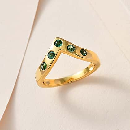AAA Gemfields Emerald Chevron Ring in 18K Yellow Gold Vermeil Plated Sterling Silver