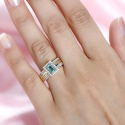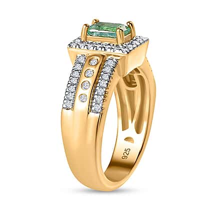 AAA Gemfields Emerald & Natural Zircon Ring in 18K Gold Vermeil Sterling Silver 1.06 Ct