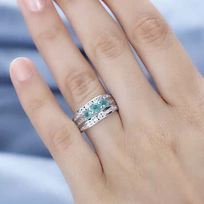 Designed with rare and excellent AAA quality Gemfields Emeralds, this Trilogy Ring in Platinum Overlay Sterling Silver looks stunning with an evening ensemble. The ring with a slight incision on the shank creates an understated split effect. The trilogy setting of the emeralds makes this a tribute to true love.