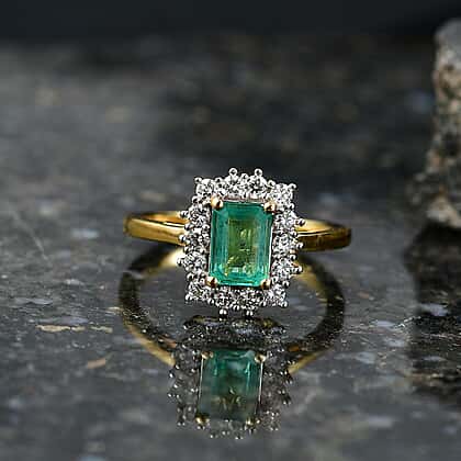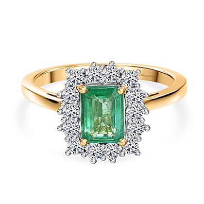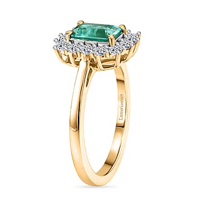 AAA Gemfields Zambian Emerald (Oct 1.00 Cts) and Lab Grown Diamond (SI-G-H 0.35 Cts) Ring in 18K Yellow Vermeil Sterling Silver 1.35 Ct.