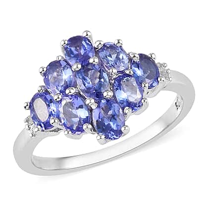 AAA Tanzanite and Diamond Cluster Ring in Platinum Overlay Sterling Silver 1.60 Ct.