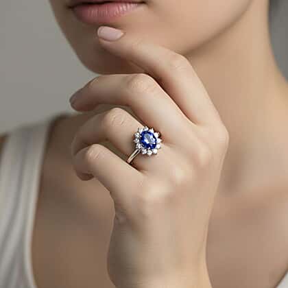 AAA Tanzanite & Lab Grown Diamond (SI-GH) Halo Ring in Rhodium Overlay Sterling Silver 1.30 Ct.
