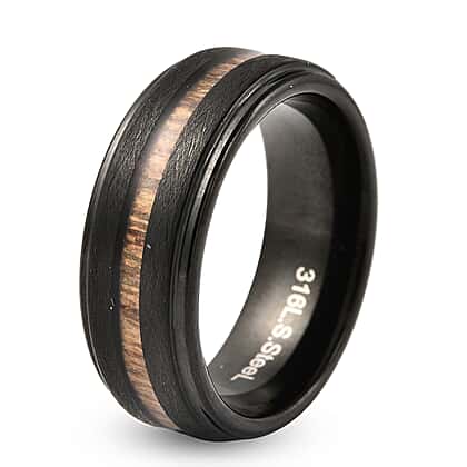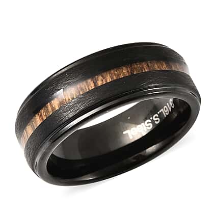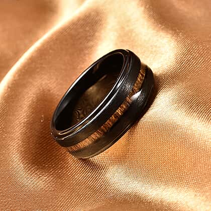 8 mm Acacia wood Band Ring in Natural Tungsten
