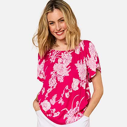 Emreco Short Sleeve Print Off Shoulder Top (Size 12) - Emerald