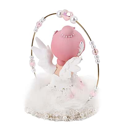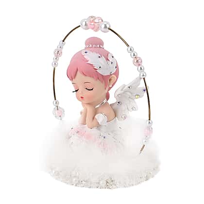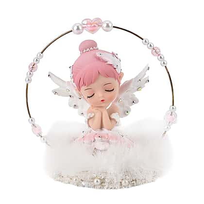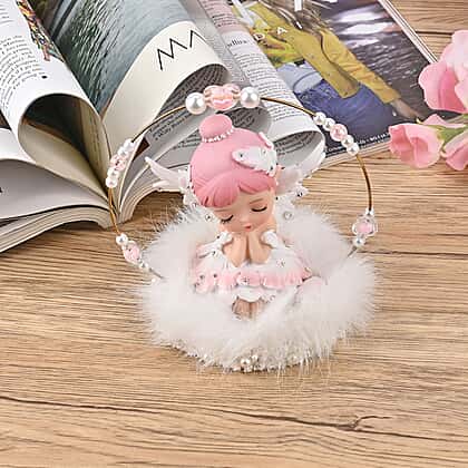 Aesthetic Sleeping Angel With Wings Tabletop Decoration (Size 14x13x10 cm) - Pink and White