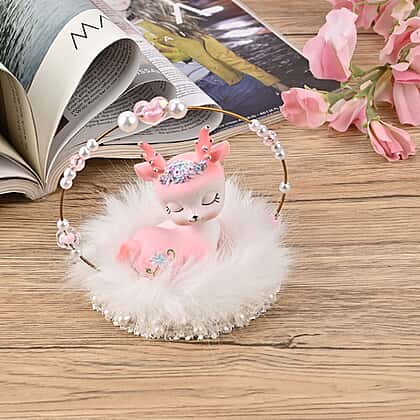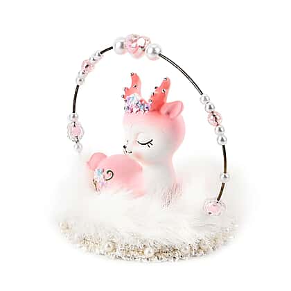 Aesthetic Sleeping Deer Tabletop Decoration (Size 12x12x10 cm) - Pink and White