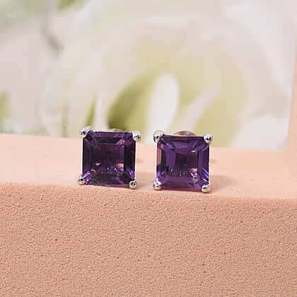 These elegant African Amethyst Solitaire Stud Earrings feature stunning purple gemstones, set in classic rhodium-plated sterling silver. The deep purple hue of the amethyst solitaires is enhanced by the spectacular Asscher Cut. The luxurious setting and the prong mounting of the gemstones adds to the beauty of the studs.