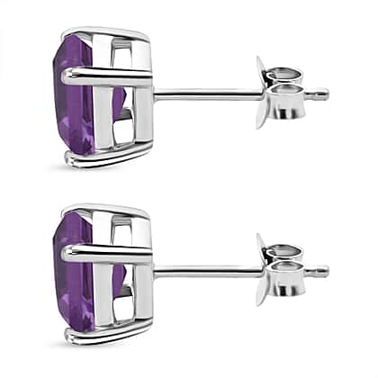 African Amethyst Solitaire Stud Earrings in Rhodium Overlay Sterling Silver 2.71 ct