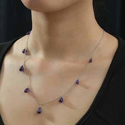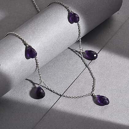 African Amethyst Necklace (Size - 20) in Rhodium Overlay Sterling Silver 15.00 Ct.