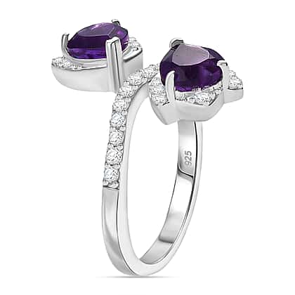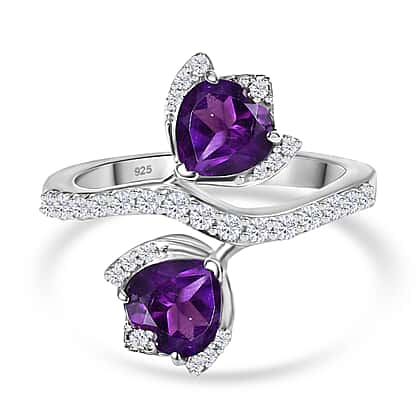 African Amethyst & White Zircon Ring in Rhodium Overlay Sterling Silver 2.13 Ct.