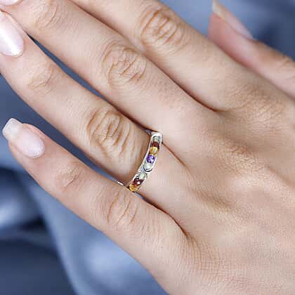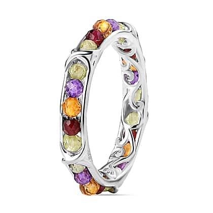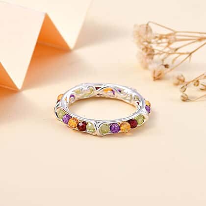 African & Multi Gemstone Band Ring in Sterling Silver 2.42 Ct