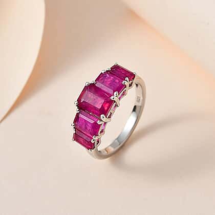 African Ruby 5 Stone Ring in Platinum Overlay Sterling Silver 4.40 Ct.