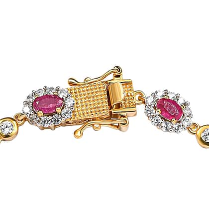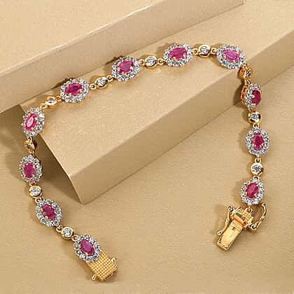 Cabo Delgado Ruby and Natural Cambodian Zircon Bracelet (Size - 8) in 18K Vermeil Yellow Gold Overlay Sterling Silver 9.29 Ct