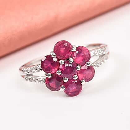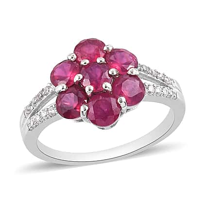 2.15 Ct. Ruby and Zircon Cluster Ring in Platinum Plated Sterling Silver