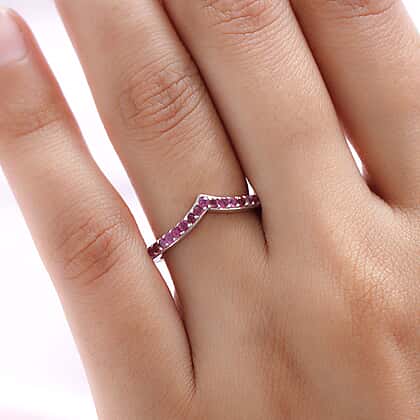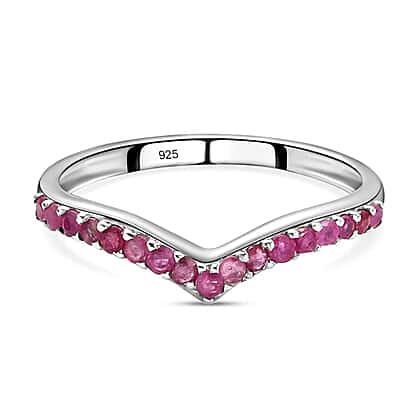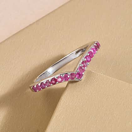 African Ruby (FF) Wishbone Ring in Platinum Overlay Sterling Silver