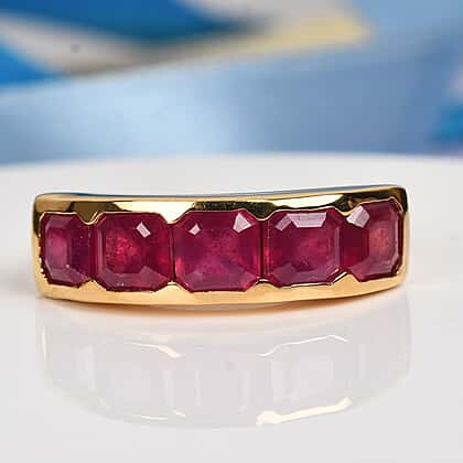 3.75 Ct African Ruby Half Eternity Band Ring in Gold Plated Sterling Silver