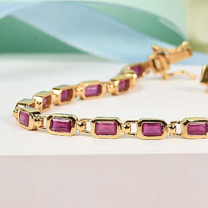 8.12 Ct. Ruby Line Bracelet in 14K Gold Plated Sterling Silver