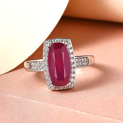 African Ruby & Moissanite Ring in Platinum Overlay Sterling Silver 3.45 Ct.