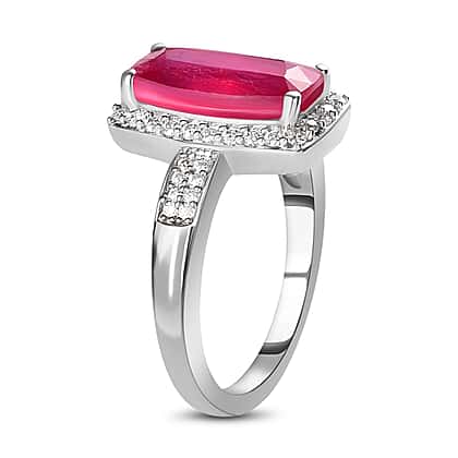 African Ruby and Moissanite Ring in Platinum Overlay Sterling Silver 3.45 Ct