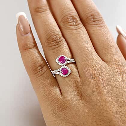 African Ruby & Moissanite Ring in Rhodium Overlay Sterling Silver 2.11 Ct.