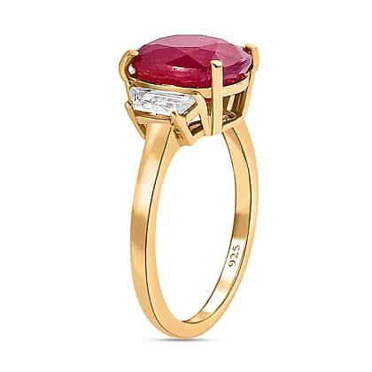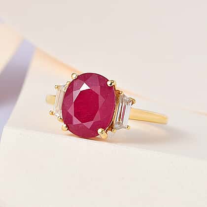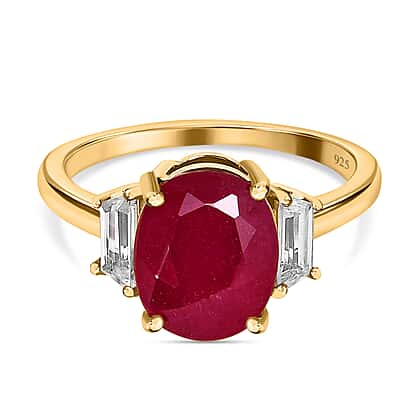 African Ruby & Natural Zircon Ring in 18K Yellow Gold Vermeil Plated Sterling Silver 4.11 Ct.