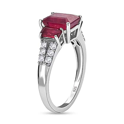 African Ruby & Natural Zircon Ring in Platinum Overlay Sterling Silver 3.50 Ct.