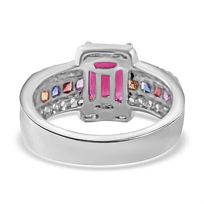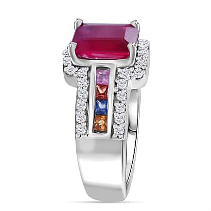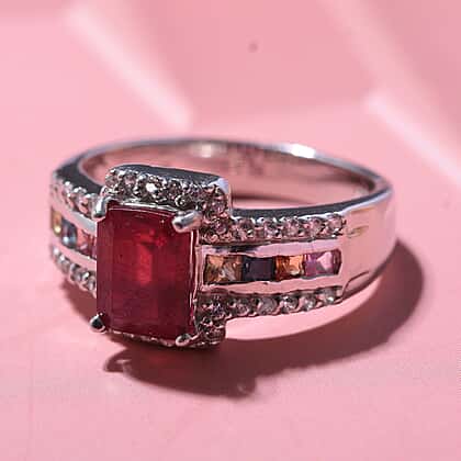 African Ruby, Rainbow Sapphire & Natural Zircon Ring in Rhodium Overlay Sterling Silver 3.05 Ct