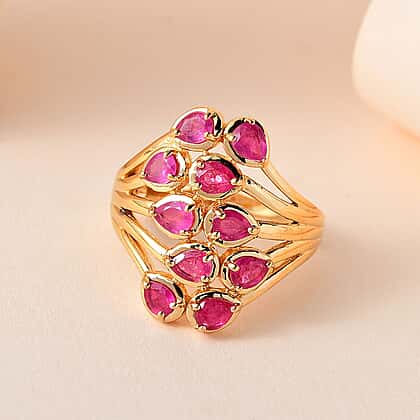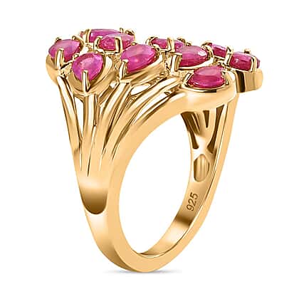 African Ruby Ring in 18K Yellow Gold Vermeil Plated Sterling Silver 2.10 Ct