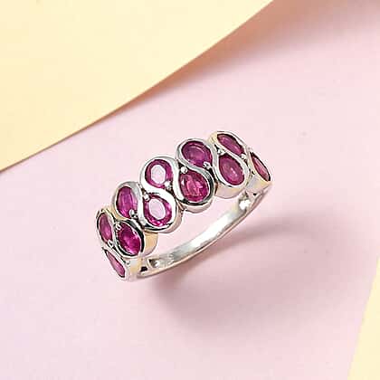 African Ruby Ring in Platinum Overlay Sterling Silver 2.90 Ct.