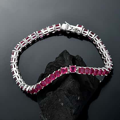 African Ruby Tennis Bracelet (Size - 7) with GB Lock Box in Rhodium Overlay Sterling Silver 22.23 Ct, Silver Wt. 9.64 Gms.