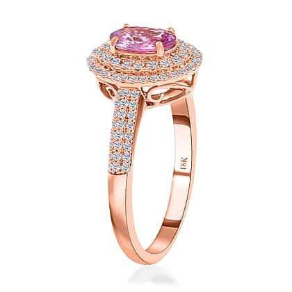 Certified and Appraised ILIANA 18K Rose Gold AAA Pink Sapphire and Diamond SI GH Double Halo Wedding Band Ring 3.58 grams, 1.40 Ct