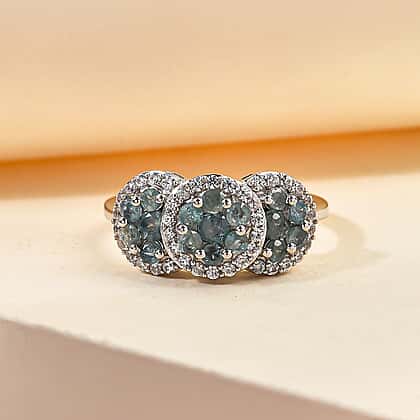Alexandrite & Natural Zircon Ring in Platinum Overlay Sterling Silver 1.32 Ct.