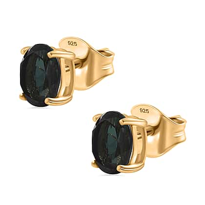 Alexandrite Triplet Quartz Earring with Push Back in 18K Yellow Gold Vermeil Sterling Silver 2.92 Ct.
