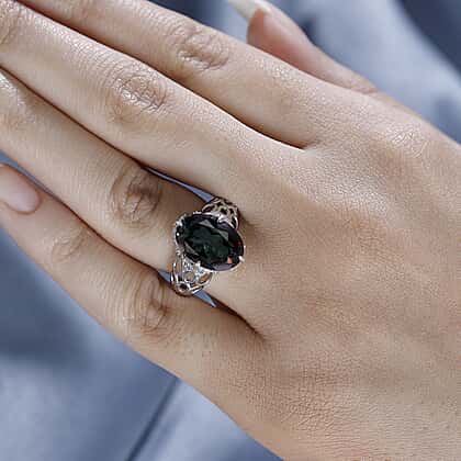 Alexandrite Triplet Quartz, White Zircon Cluster Ring in Rhodium Overlay Sterling Silver 6.53 Ct.